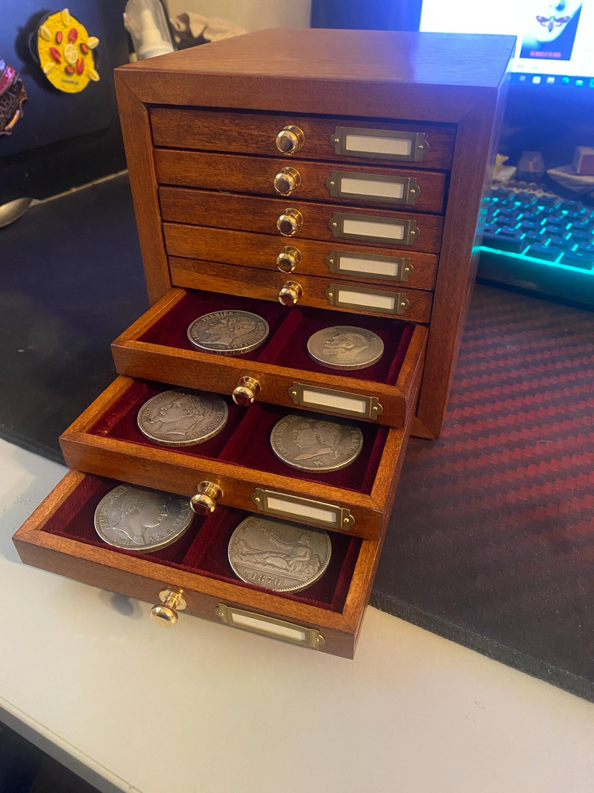 Coin cabinet made up of drawers of this type: